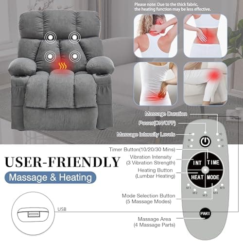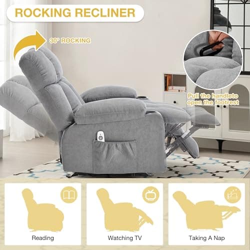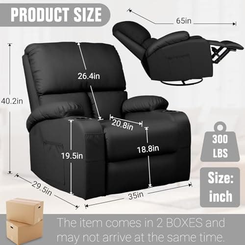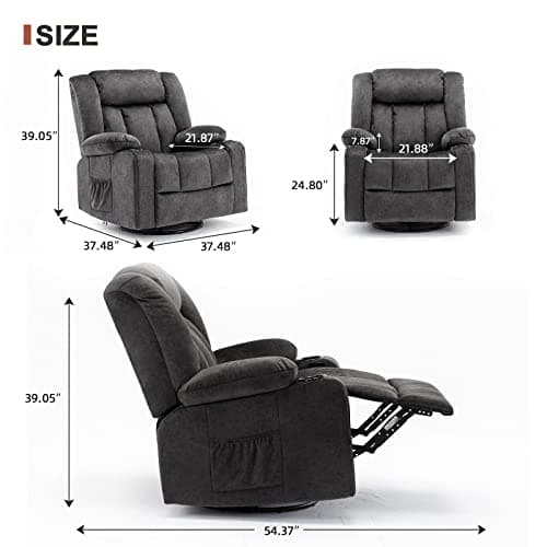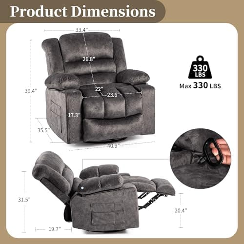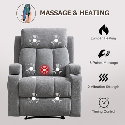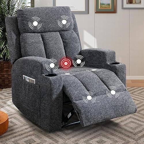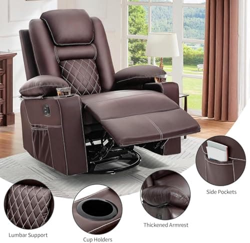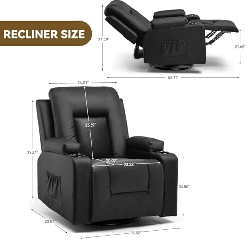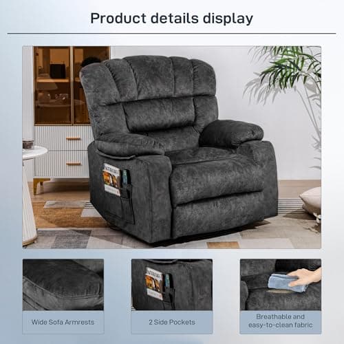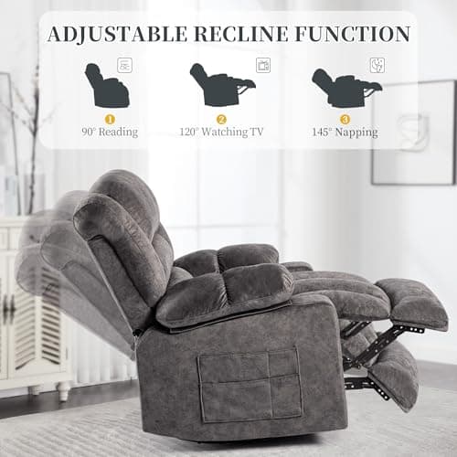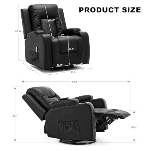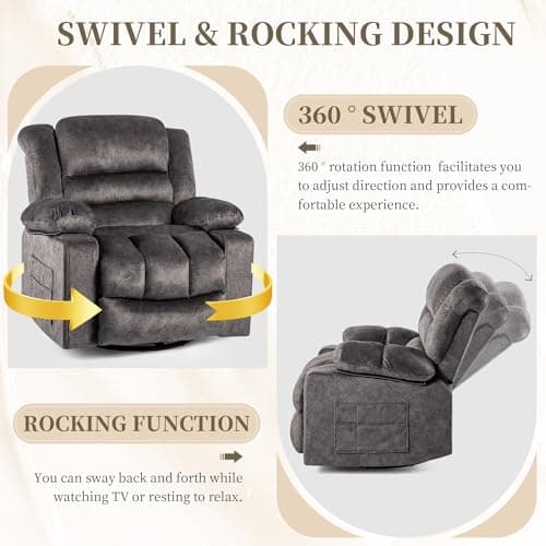 BOSMILLER Oversized Recliner Chair for Adults with Vibration Massage and Lumbar Heating Swivel Rocker Recliner with Cup Holder and USB Charge Port for Living Room
