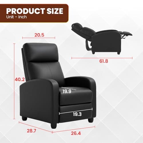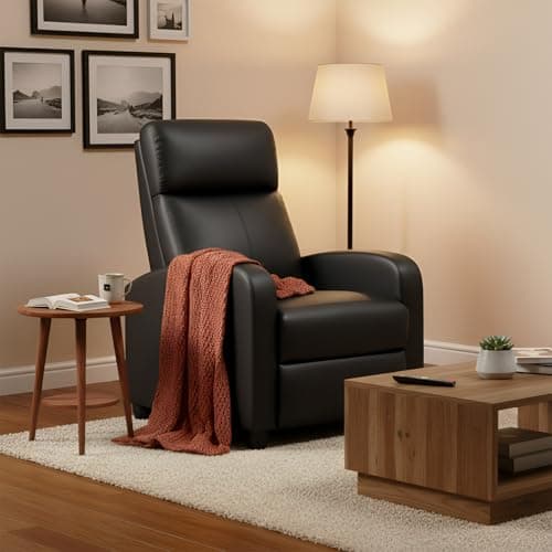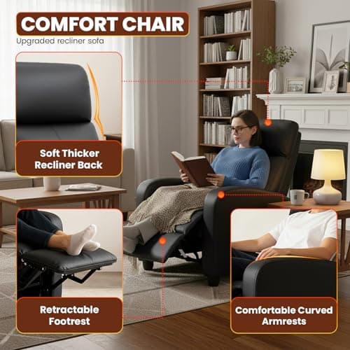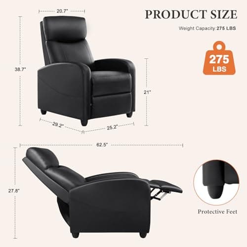 Homall Recliner Chair, Recliner Sofa PU Leather for Adults, Recliners Home Theater Seating with Lumbar Support, Reclining Sofa Chair for Living Room (Black, Leather)