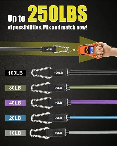 Resistance Bands for Working Out, 250lbs Heavy Duty Resistance Bands, Exercise Bands Resistance for Men Women, Workout Bands with Premium Handles, Door Anchor Ankle Strap, Home Training Equipment