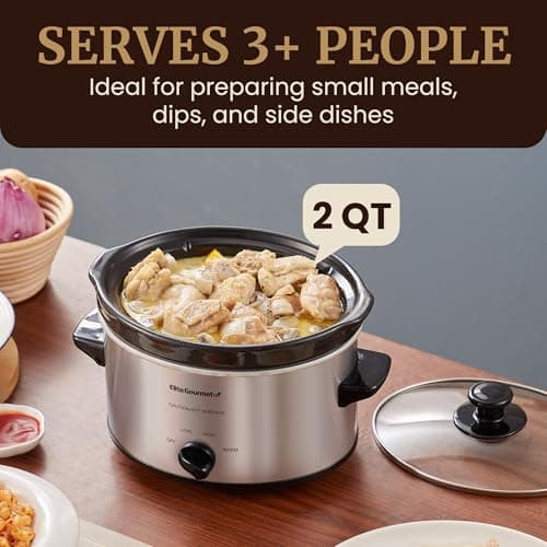 Crock-Pot 2-Quart Manual Slow Cooker, Feeds 2+ People, Great for Small Meals, Dips, & Sides; Removable Stoneware is Oven & Dishwasher Safe, Black