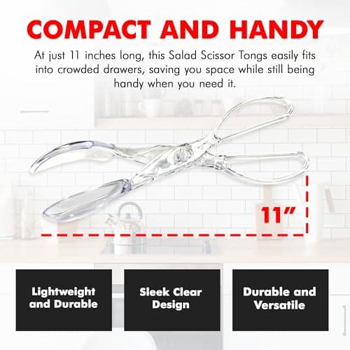 Chef Craft Premium Salad Scissor Tongs, 11.25 inch, Clear