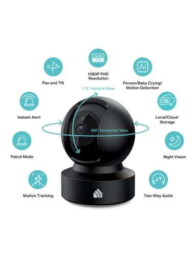 Kasa 1080p Indoor Pan/Tilt Wired Security Camera - Works as a Baby & Pet Monitor, Motion Detection & Tracking, 2-Way Audio, Night Vision, Subscription-Free Local Storage or Optional Cloud, EC71
