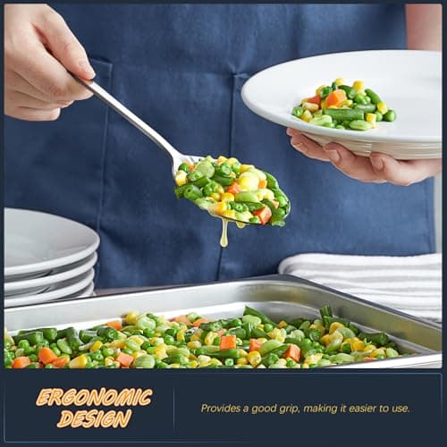 GoGeiLi Stainless Steel Serving Set, 3 Large Spoons and 3 Slotted Spoons, 9.5-inch Catering Set for Party, Banquet, Buffet, Dishwasher Safe