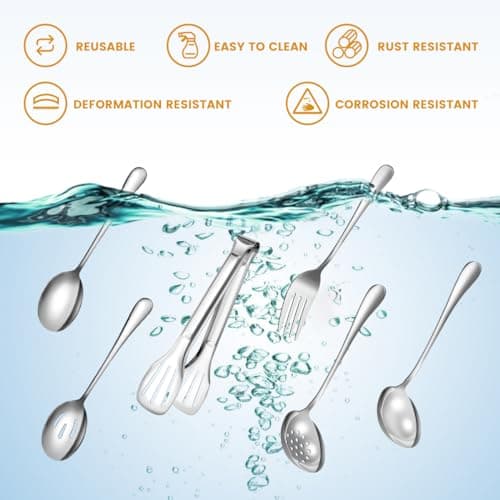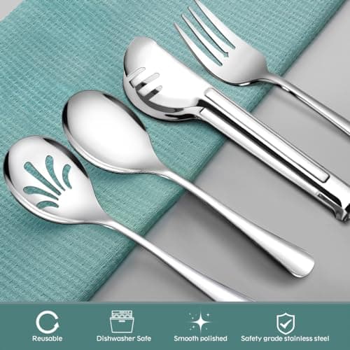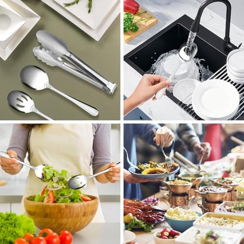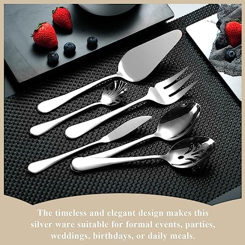Start with the reason the set would actually earn drawer or buffet-table space. If you want a simpler daily option, compare everyday family serving with serving spoon set. If you need a fuller event-ready kit, compare full entertaining kit with buffet catering and heavy duty feel.