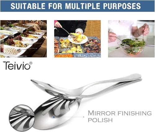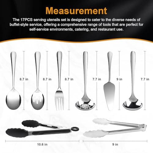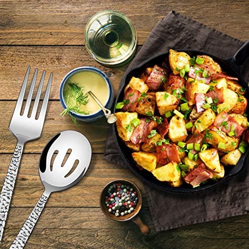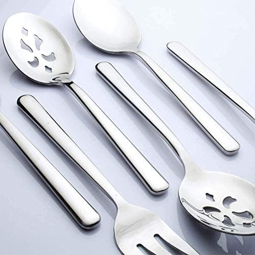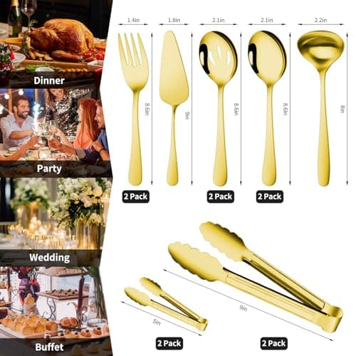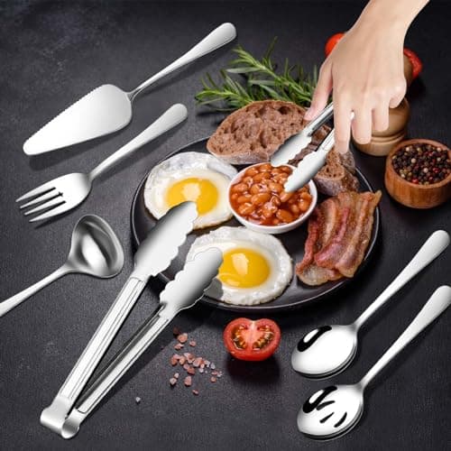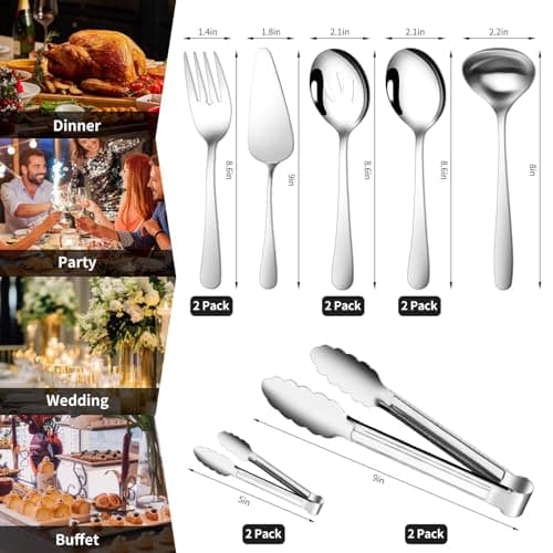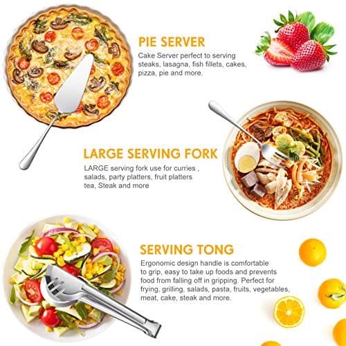 KINGSTONE Large Hostess Serving Utensils Set, 18/10 Stainless Steel Heavy Duty 10-inch Serving Utensils, Slotted Spoons, Forks, Tongs, Cake Pie Server for Buffet, Wedding, Party