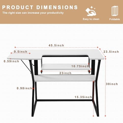 Vividwood Sewing Table, Large Sewing Machine Table with Adjustable Platform and Storage Shelf - White