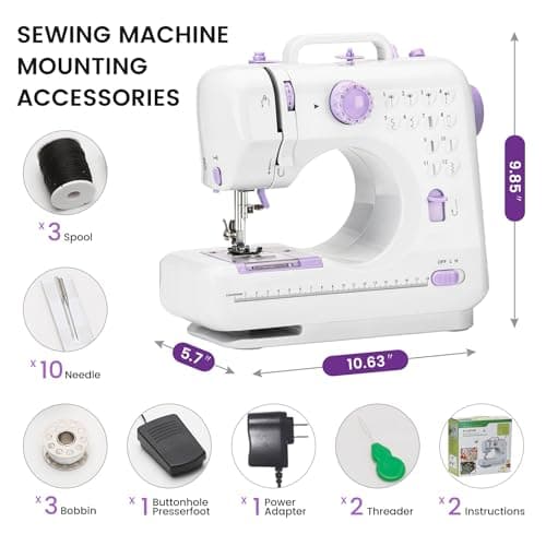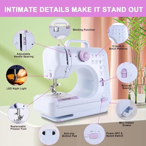 Beginner-Friendly Mini Sewing Machine with 12 Built-in Stitches, Sewing Machine with Foot Pedal, Portable, High-Low Speeds, Perfect for Sewing Enthusiasts