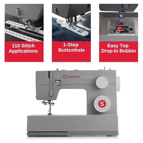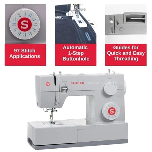 SINGER Heavy Duty 4423 High Speed Sewing Machine with Accessory Kit | Strong Motor with Enhanced Piercing Power, 97 Stitch Applications, Full Metal Frame, 1-Step Buttonhole & LED Light, Grey