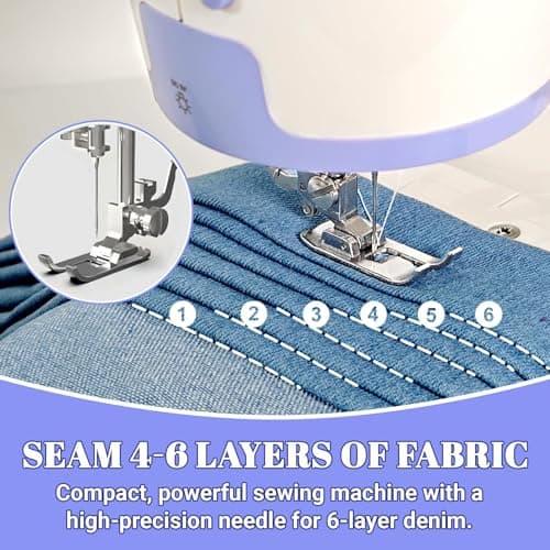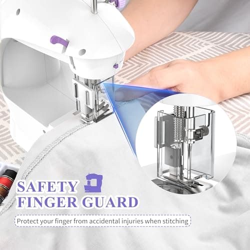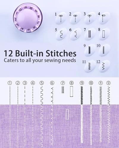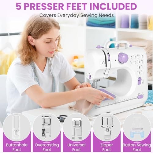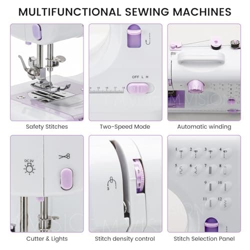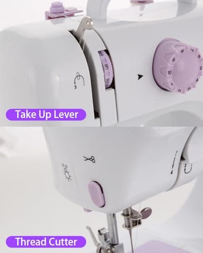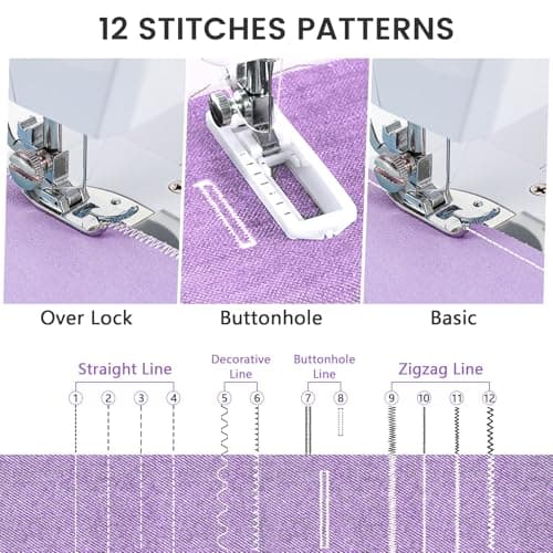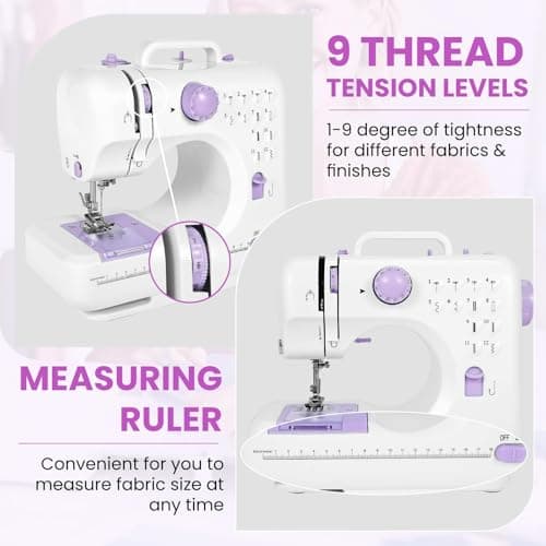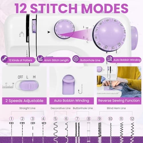 Sewing Machine for Beginners,Portable Sewing Machine with 12 Built-in Stitches,2 Speed(High-Low Speeds),2 Power Supply Method,20 Pcs Fabric and 32 Pcs Sewing Threads Kit,- (White and Purple)