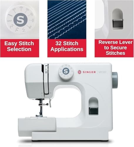 SINGER® M1000 Mending Machine (White) with Accessories | 4 Built in Stitches deliver 32 Stitch Applications | Compact, Lightweight, Portable | Great for Light to Medium Weight Fabrics & Repairs