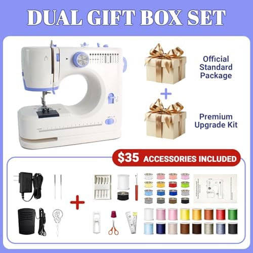 Sewing Machine for Beginners – Clearance!12 Built-in Stitches, 2 Speed Foot Pedal, LED Light, 32-Color Thread Kit, Mini Electric for Kids & Adults, Portable Home Mending & Crafting – Only