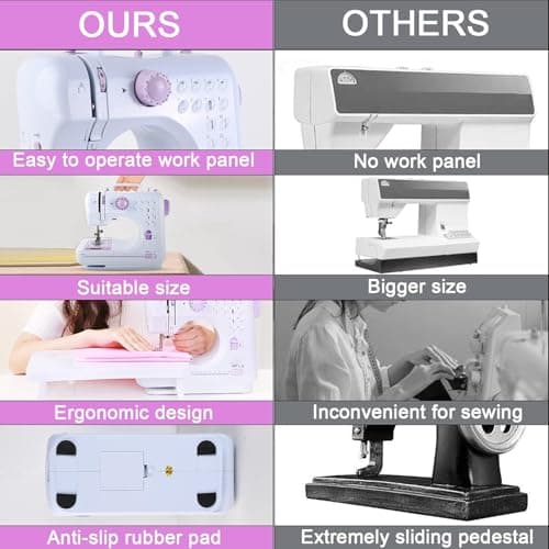Sewing Machine for Beginners & Kids, Mini Portable Sewing Machines with 12 Built-in Stitch Patterns, 2-Speed Foot Pedal, Perfect for Teaching Daughter Granddaughter to Sew(Purple White)