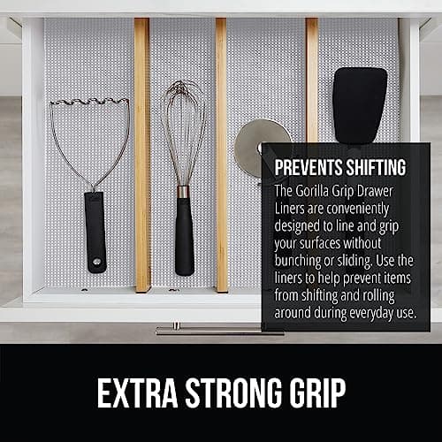GORILLA GRIP powerGRIP Drawer Shelf and Cabinet Liner, Thick Strong Hold, Non-Adhesive Liners Protect Kitchen Cabinets and Cupboard, Bathroom Drawers, Easy Install, Breathable Mat, 12" x20', Beige