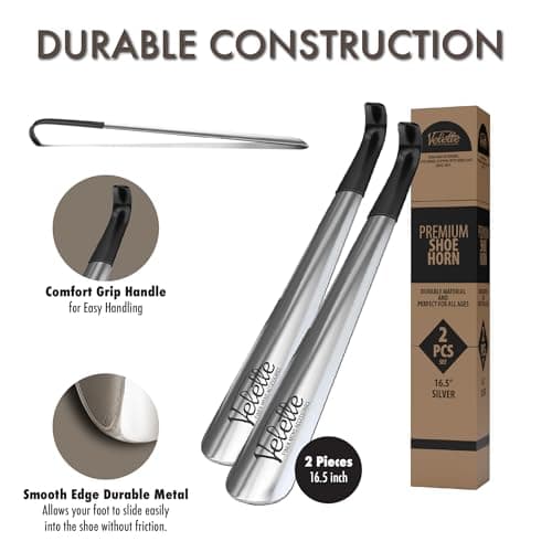 Velette Long Shoe Horn for Seniors - 2 Pack 16.5" Metal Shoe Horn Long Handle for Seniors, Men, Women & Kids - Boot Horns, Shoehorn Long-Handle, Elderly Must Haves - Shoes Spoon, Gifts for Elders