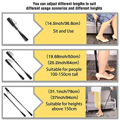 JJDPARTS Shoe Horn Long Handle,14.5"-37" Retractable Shoe Horn,Aluminum Shoe Horn For Men Women Kids Seniors