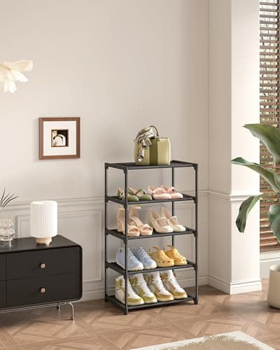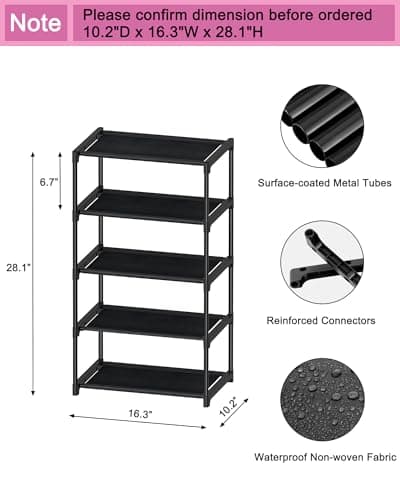 Autonomier 5-Tier Small Shoe Rack, Narrow Space-Saving Organizer for Small Spaces, Non-Woven Fabric Lightweight Shoe Shelves, for Closet Floor, Front Door, Entryway, Kids/Toddler/Adults, Black