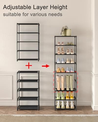 MADSOUKY Shoe Rack Tower 8 Tiers DIY Narrow Stackable Free Standing Skinny Shoes Cubby Storage Shelf Organizer for Entryway Hallway Garage
