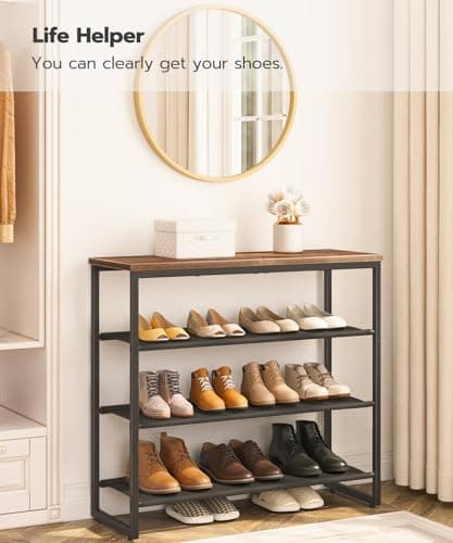 HOOBRO Shoe Rack, 4 Tier Shoe Storage Organizer with 3 Oxford Fabric Shelves and Top Panel, Holds 12-16 Pairs of Shoes for Entryway and Closet, Industrial, Rustic Brown BF47XJ01G1
