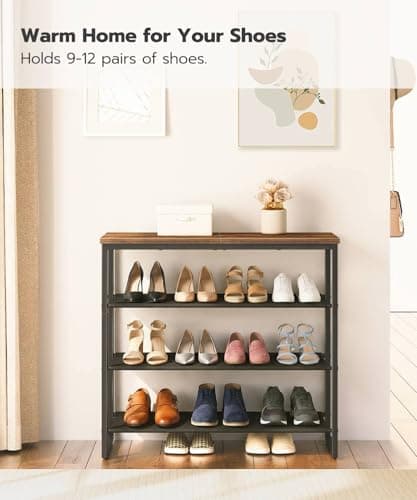 VASAGLE Shoe Rack, 4-Tier Shoe Storage Organizer for Entryway and Closet, Holds 9-12 Pairs of Shoes, 3 Fabric Shelves, Steel Frame, Industrial, Rustic Brown and Black ULBS035B01