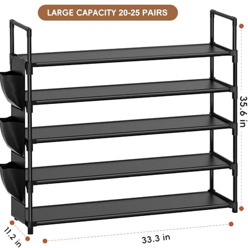 OYREL 5 Tier Shoe Organizer Rack for Closet, Entryway, Garage, Door, Space Saving, Shoe Holder Stand/Tower, Large, 20-25 Capacity