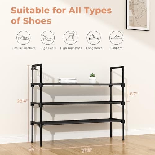 Kitsure Shoe Rack for Closet, Sturdy Shoe Storage for Entryway, Space-Saving Shoe Rack Small and Shoe Shelf, 27.6" Wide, Black
