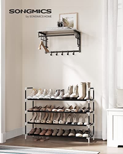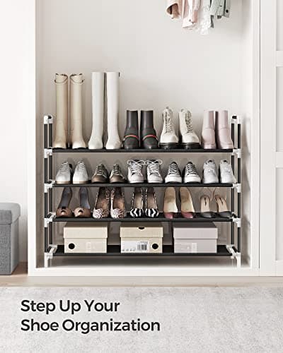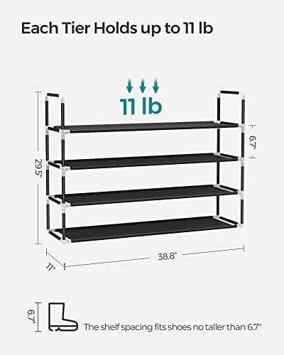 SONGMICS 4-Tier Shoe Rack, Shoe Storage for Hallway Closet, Slim and Space-Saving, Metal Frame, Non-Woven Fabric Shelves, Black ULSH054B01
