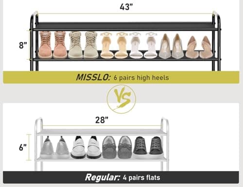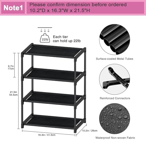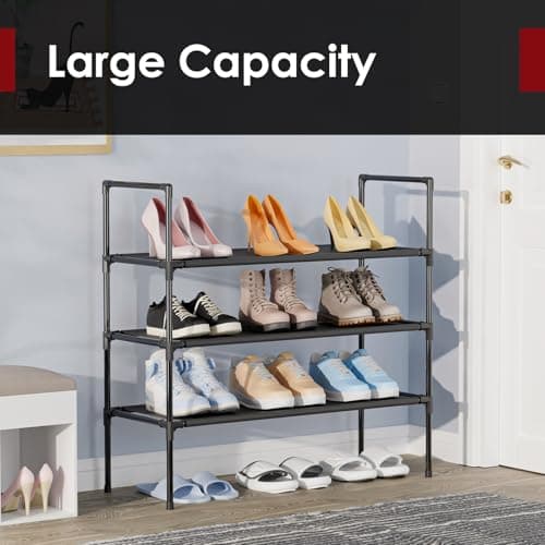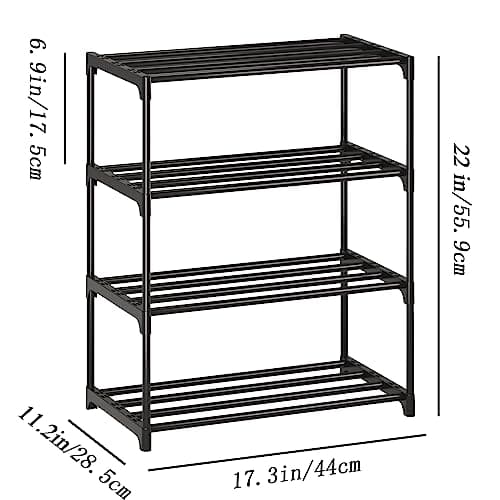 SOKOSEN 4-Tier Small Shoe Rack, Metal Stackable Kids Shoe Shelf Storage Zapateras Organizer,Narrow Shoe Rack Sturdy for Closet Hallway Entryway Living Room Bedroom (Black)