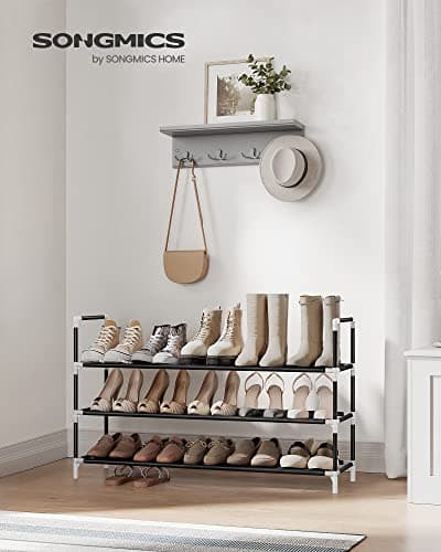 SONGMICS 3-Tier Shoe Rack, Shoe Storage for Hallway Closet, Slim and Space-Saving, Metal Frame, Non-Woven Fabric Shelves, Black ULSH053B01