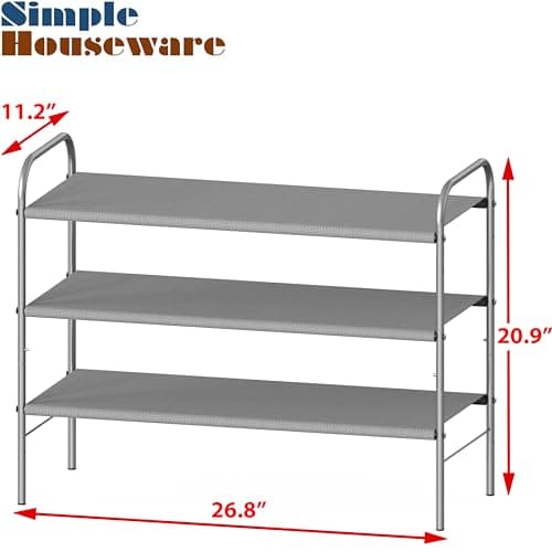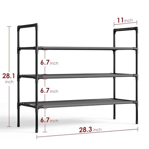 Simple Trending 3 Tier Stackable Shoe Rack, Expandable Adjustable Fabric Shoe Shelf Storage Organizer, Black