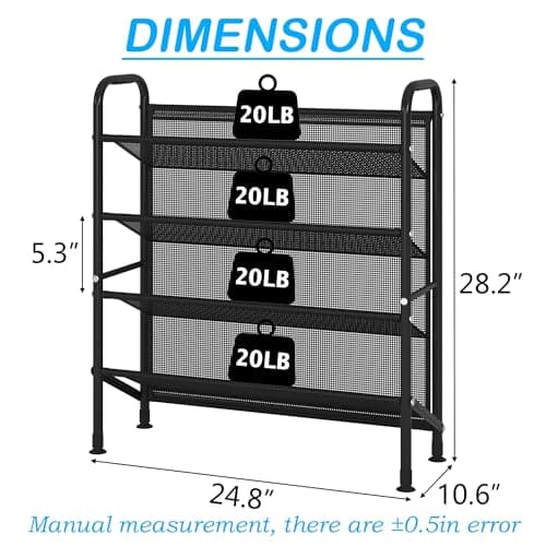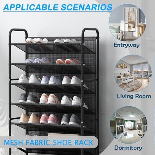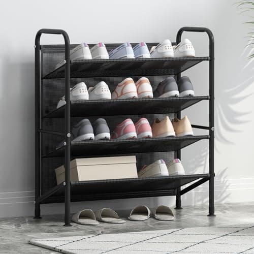 FKUO 4 Tier Shoe rack for closet Mesh fabric narrow Metal shoe racks, Space saving Small Shoe Storage Organizer Shelf for Entryway, Hallway, Dorm Room (Black, 4-Tier)