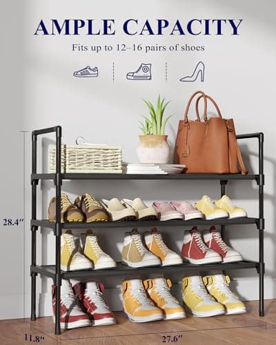 JZM Shoe Rack Storage, Narrow 4 Tier Metal Shoe Storage Shelf, Free Standing Shoe Racks, Space Saving Shoe Rack Organizer for Entryway, Hallway, Bedroom, Living Room(12-16 Pair)