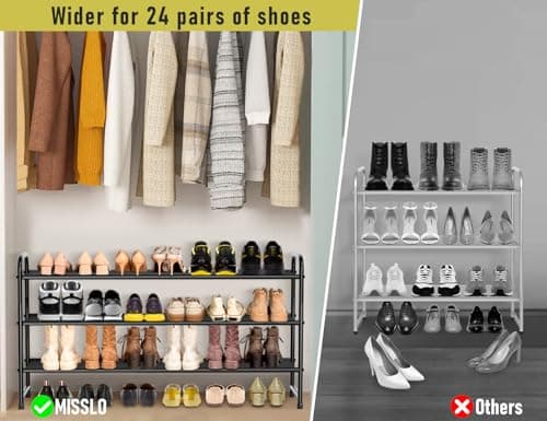 MISSLO 3-Tier Long Shoe Rack for Closet Shoe Organizer for Closet Floor Entryway Storage Stackable Wide Shoe Shelf Stores 24 Pairs of Men Sneakers, Black
