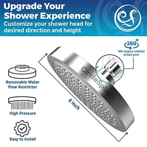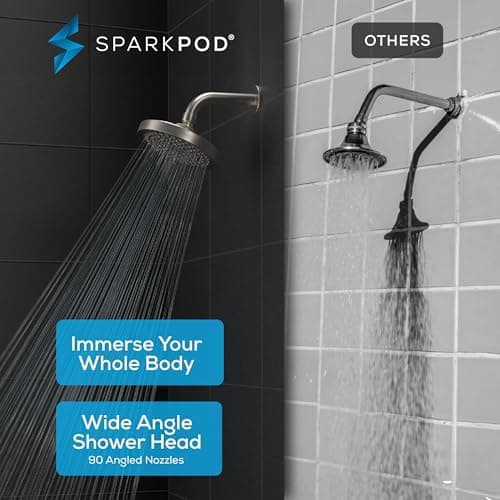 SparkPod Shower Head - High Pressure Rain - Premium Quality Luxury Design - Easy Clean Adjustable Replacement for Your Bathroom Shower Heads (Luxury Polished Chrome, 6 Inch Square)