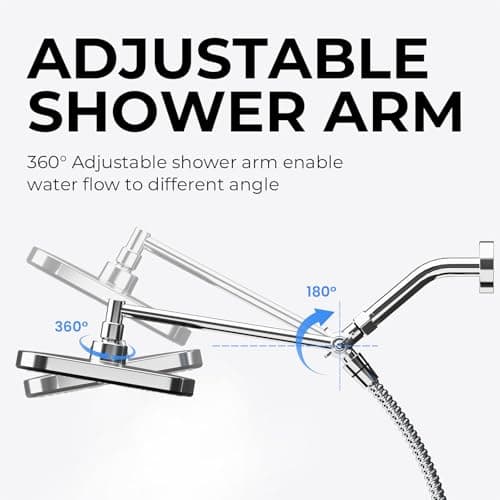 10" Rainfall Shower Head with Handheld Combo, Upgrade 12" Extension Arm Height Adjustable, 3-Way High Pressure Spray, Shower Holder Extra Long Hose, Chrome