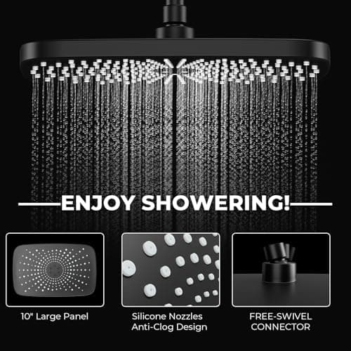 Hibbent All Metal cUPC Certified Rain Shower Head, 10'' High Pressure Rainfall Showerhead with 16" Shower Head Extension Arm, Solid Brass Adjustable Shower Arm Extender, fixed Showerheads, Matte Black