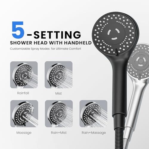 Seacity Wide Rain Shower Head With 5 Modes Handheld Showerheads, High Pressure Showerhead Combo with Extension Arm for Bathroom Accessories, Adjustable Shower Head with Anti-Clog Nozzles (Black)