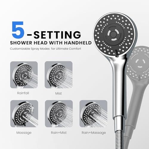 Seacity Wide Rain Shower Head With 5 Modes Handheld Showerheads, High Pressure Showerhead Combo with Extension Arm for Bathroom Accessories, Adjustable Shower Head with Anti-Clog Nozzles (Chrome)