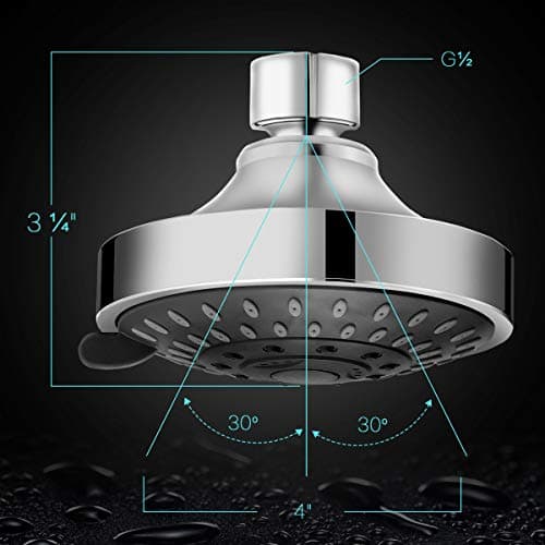 WarmSpray High Pressure Shower Head 5 Settings Fixed Showerhead 4 Inch High Flow Bathroom Showerhead with Adjustable Brass Ball Joint for Luxury Shower Experience Even at Low Water Pressure