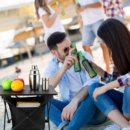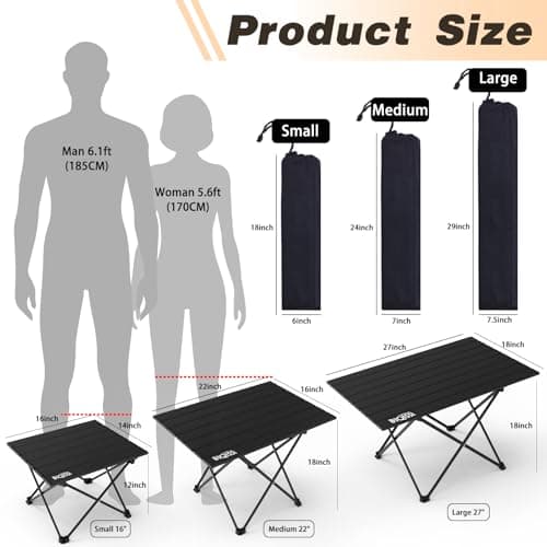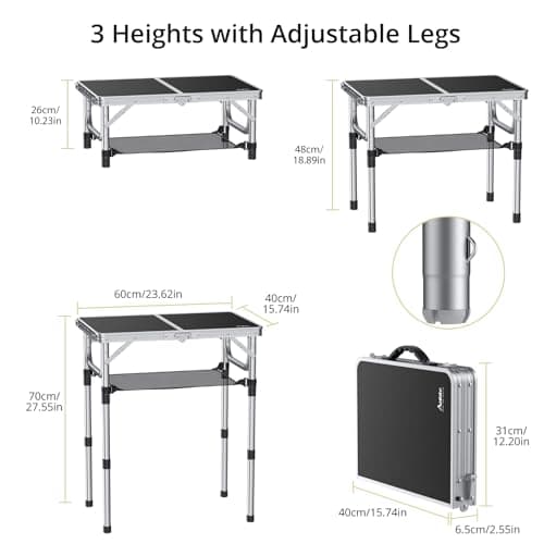 Grope Portable Camping Table with Aluminum Table Top, Folding Beach Table Easy to Carry, Prefect for Outdoor, Picnic, BBQ, Cooking, Festival, Beach, Home Use (Black-S)