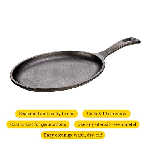 Lodge 10 x 7.5 Inch Cast Iron Oval Serving Griddle - Cast Iron Fajita Pan with Signature Teardrop Handle - Fajita Skillet for Use in the Oven, on the Stove, or on the Grill or Over a Campfire - Black