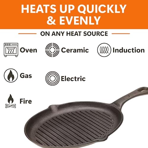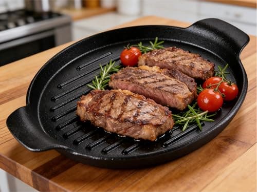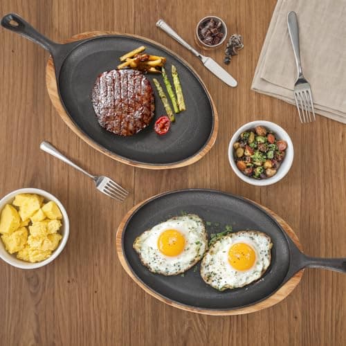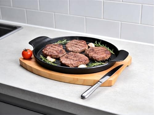 Cast iron remains the safest starting point for buyers who want the plate to stay hot through serving, while compact and oval variants solve footprint and plating tradeoffs. Use the active refinements to decide whether heat retention, serving size, or use case matters most before you compare individual products.