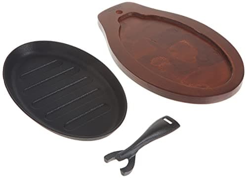The current sizzling plate market is led by cast iron servers and platter-style products, but the strongest divide is still service style: home-friendly compact sets, broader oval servers, and heavier restaurant-ready trays. Material, serving base quality, and footprint will narrow this category faster than brand alone.