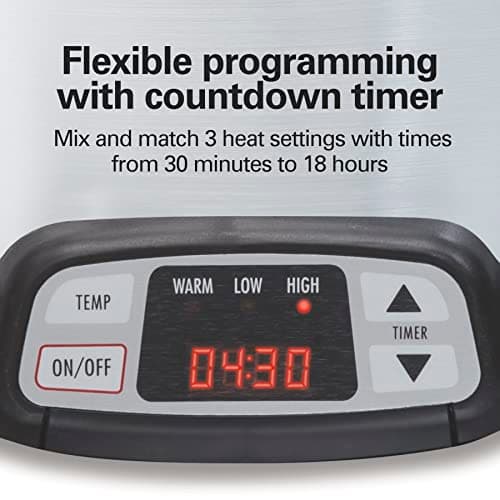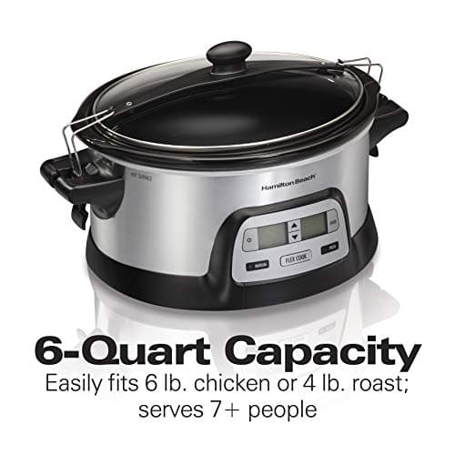 Hamilton Beach 7 Quart Programmable Slow Cooker With Flexible Easy Programming, 5 Cooking Times, Dishwasher-Safe Crock & Lid, Silver (33473)