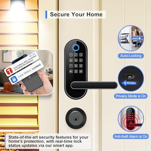 Fingerprint Smart Door Lock with Handle & Keypad – No More Lost Keys, Keyless Entry & Remote Access for Home, Kids, Airbnb & Rental Property, DIY Install, Alexa & Google Compatible