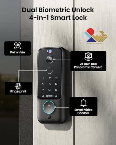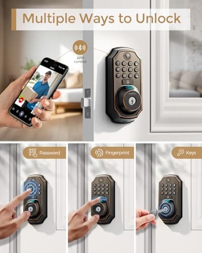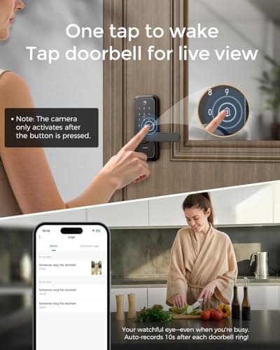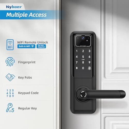 Keyless Entry Deadbolt - WiFi Video Smart Lock with Camera, 5-in-1 (Camera+Doorbell+Fingerprint+Keypad), App Control, Two-Way Audio, Waterproof, Easy Installation