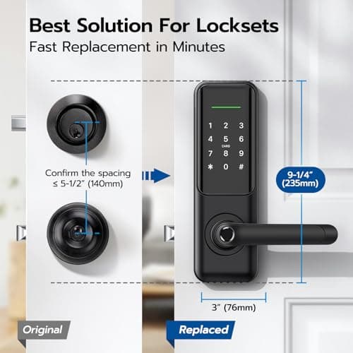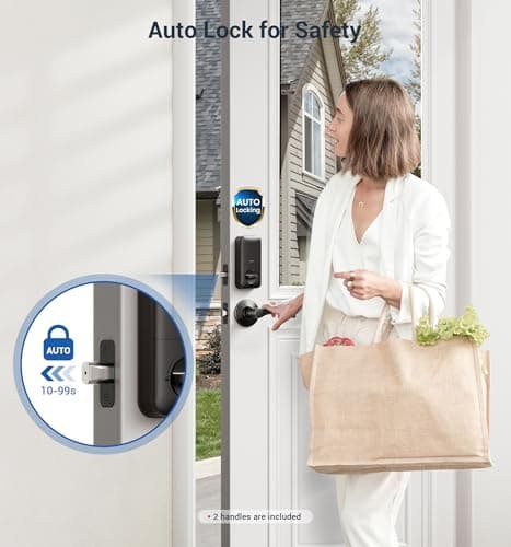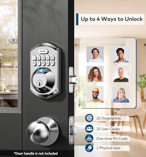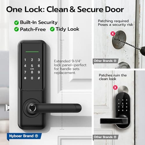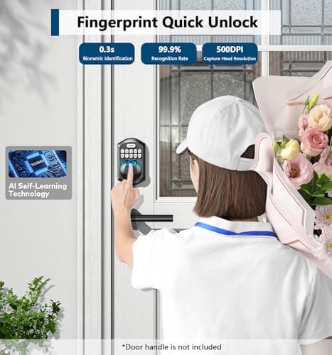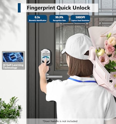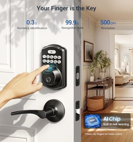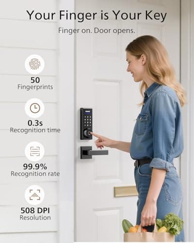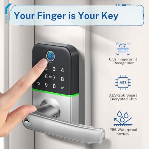 Fingerprint Smart Door Lock with Handle & Keypad – No More Lost Keys, Keyless Entry & Remote Access for Home, Kids, Airbnb & Rental Property, DIY Install, Alexa & Google Compatible