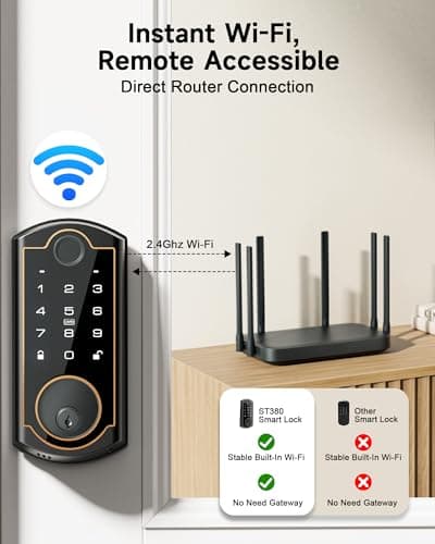 SohoTeco Smart Lock ST380, Built-in Wi-Fi, Fingerprint Keyless Entry Door Lock, Security Deadbolt Smart Locks for Front Door, App Remote Control & Auto Lock, IP56 Waterproof, (2025 Upgrade)