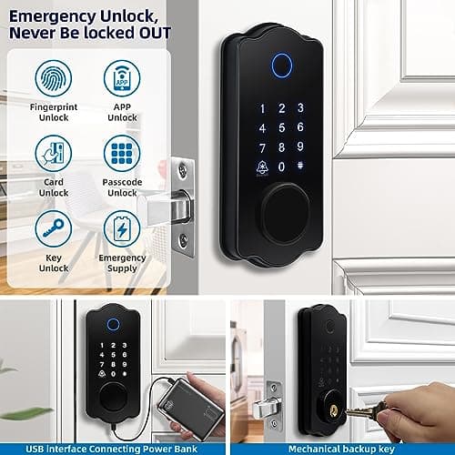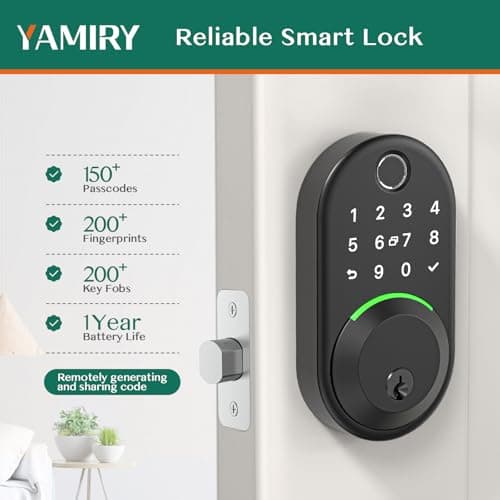 Yamiry Smart Door Lock, Biometric Fingerprint, Keyless Entry, App Control, 6 Ways to Unlock, DIY Installation, Black