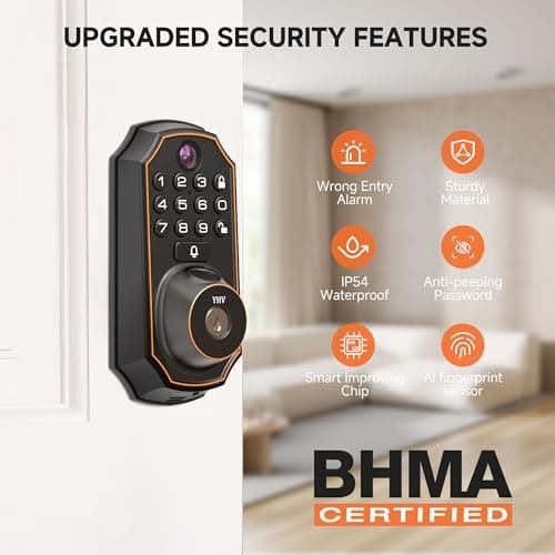 YHV Keyless Entry Door Lock with Camera Fingerprint Smart Door Lock with App Remote Control, Wi-Fi Connected Electronic Keypad Code Deadbolt Auto Unlock for Front Door