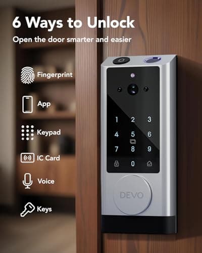 DEVO G1 Video Smart Lock with Camera & Doorbell, 6-in-1 Keyless Entry Door Lock with Fingerprint, App Remote, Auto Lock, Built-in Wi-Fi Smart Deadbolt for Front Door, IP65 Waterproof, Easy Install